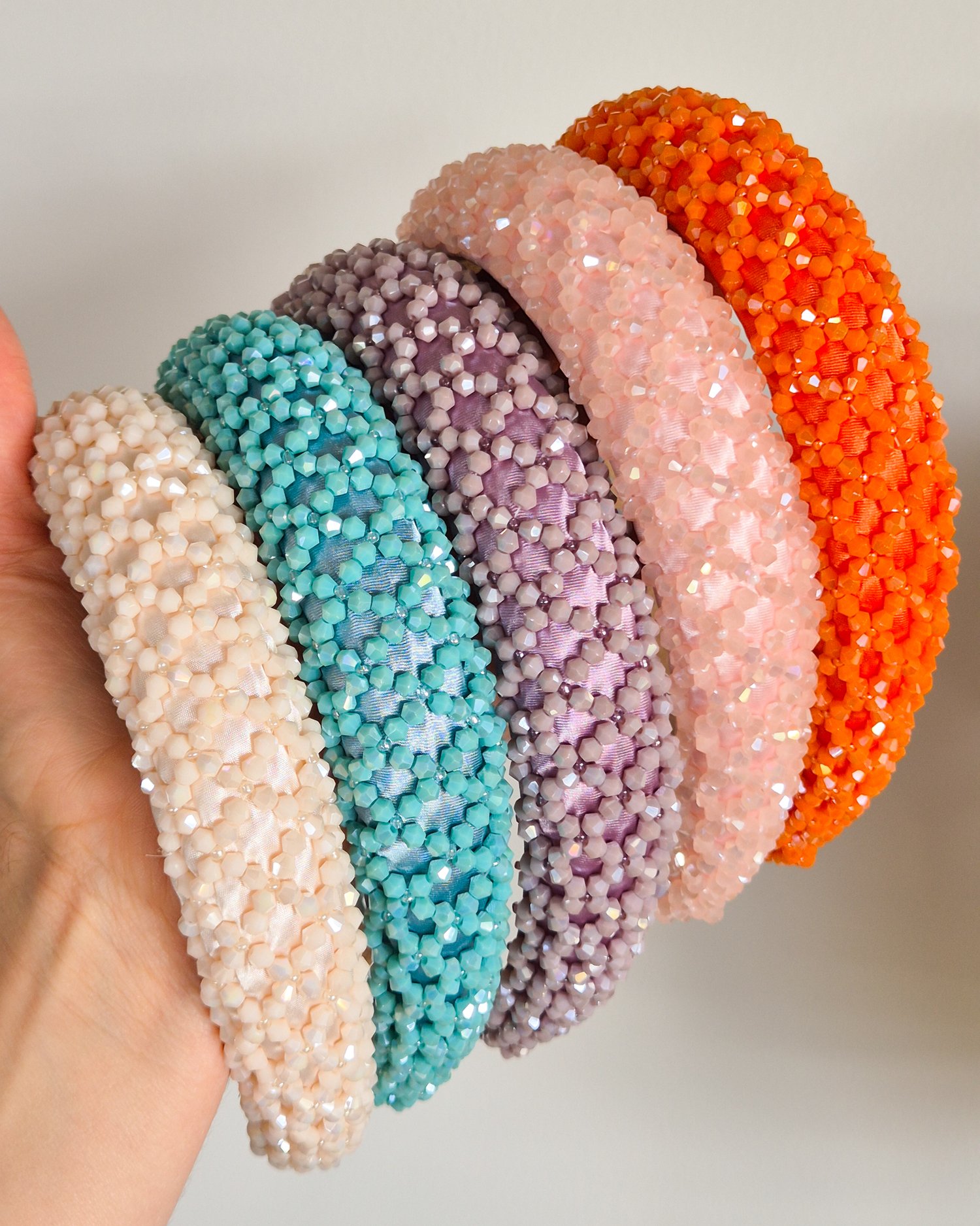 These dainty pieces feature a slightly padded headband with intricate crystal beading in an array of bright and pastel colours. Super comfy and great for parties, weddings or casual racedays.