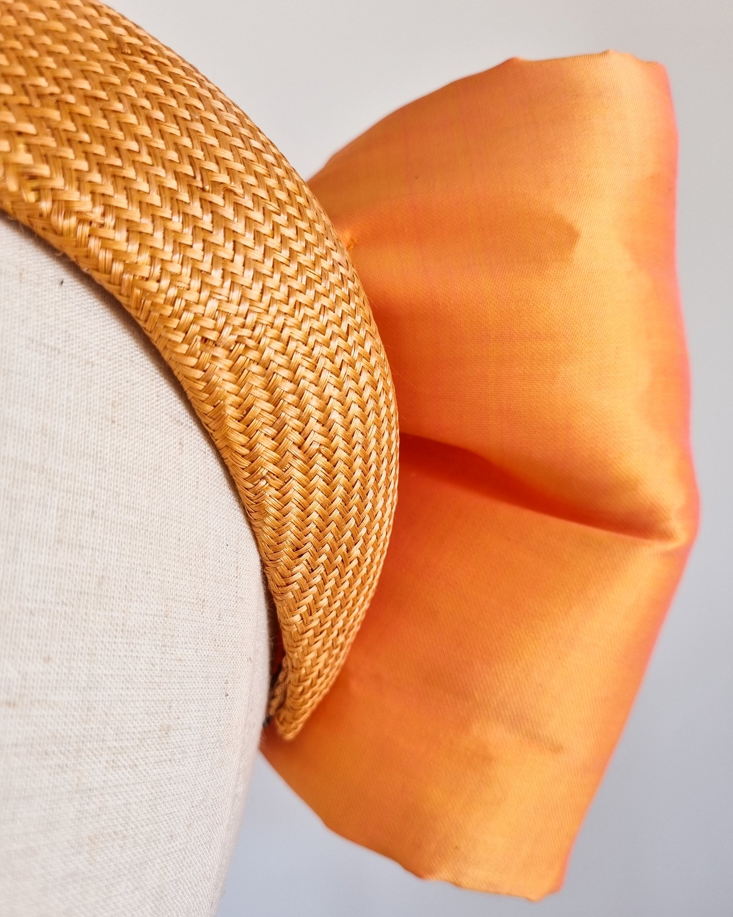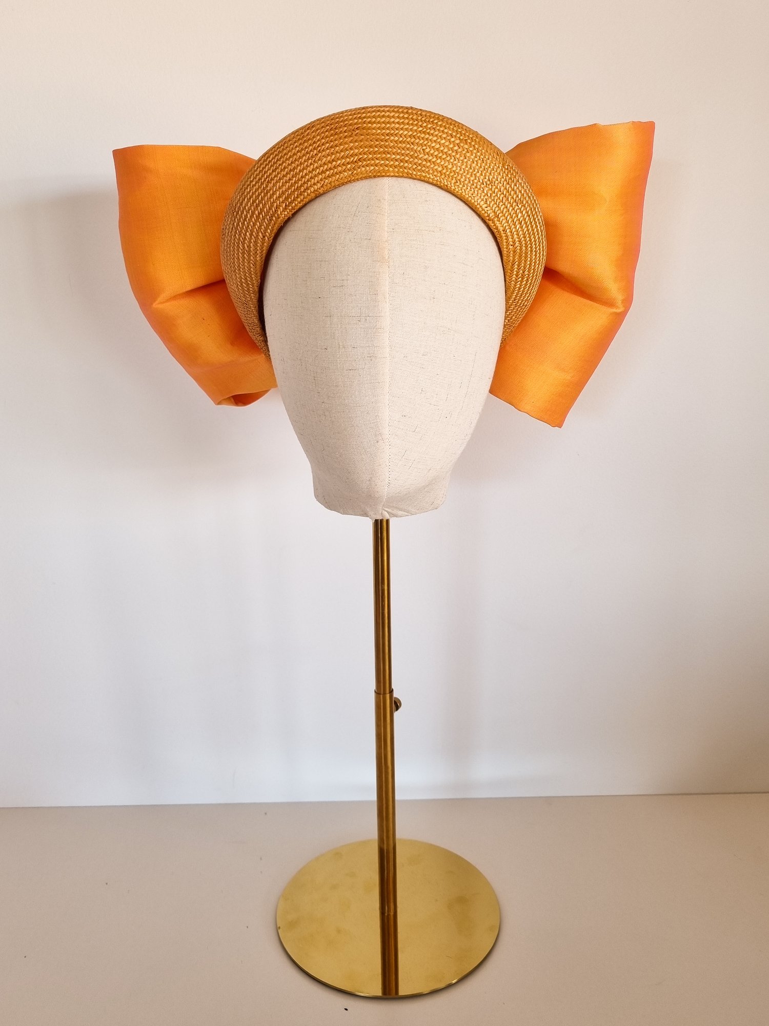 Made for myself to wear to Melbourne Cup Day, this fun piece features a hand-blocked headband with statement silk bow, fastened by an elastic. Designed and lovingly handmade by Cessiah Alice in the Cessiah Alice Millinery studio, Tasmania, Australia.